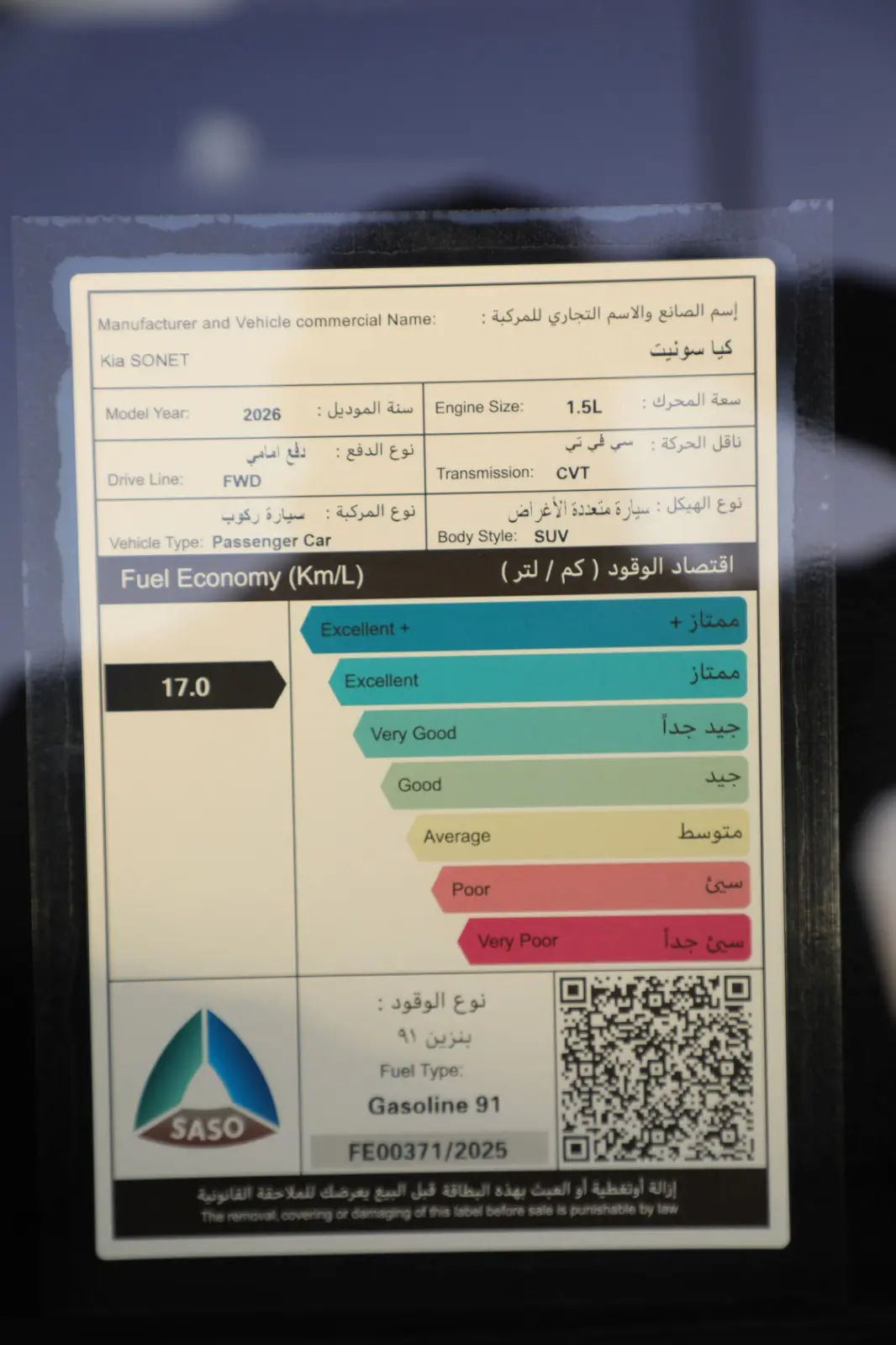كيا سونيت 1.5 EX 2026 تجمع بين الأناقة العصرية والتكنولوجيا المتطورة لتمنحك تجربة قيادة فريدة من نوعها (SUV) تجمع بين الأداء القوي والاقتصاد في استهلاك الوقود، مع تصميم خارجي أنيق ولمسات داخلية راقية توفر أقصى درجات الراحة والرفاهية. بفضل محركها سعة 1.5 لتر وقوتها العملية